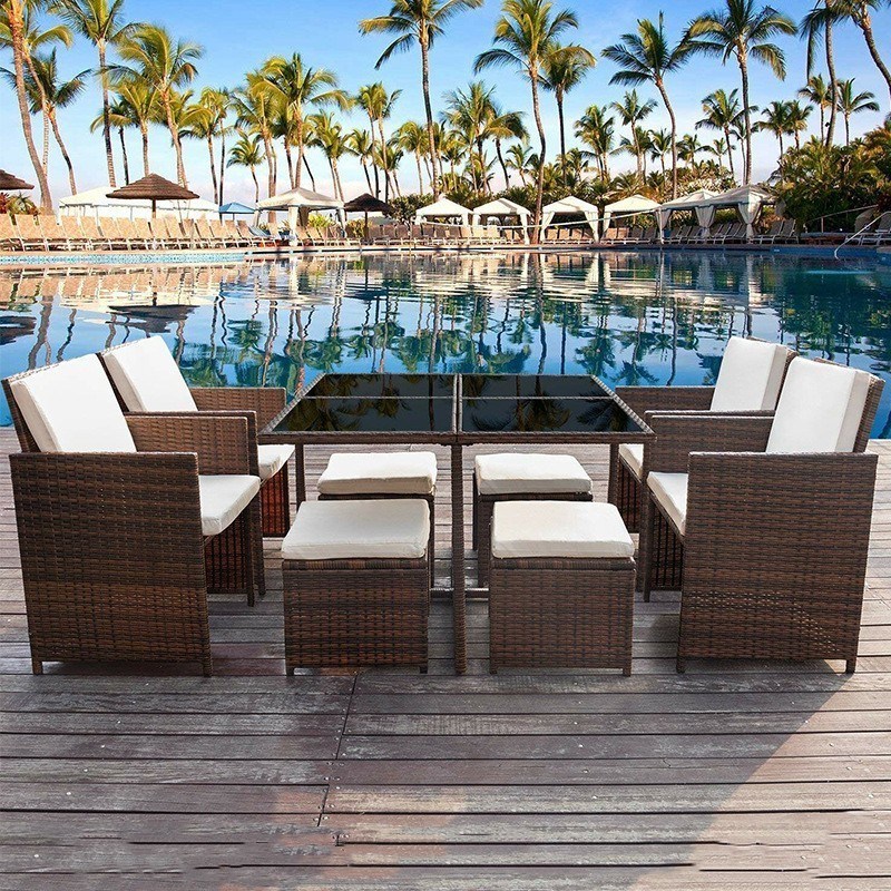 Venta al por mayor Precio adecuado Mejores muebles exteriores de ratan de vícara Mesa de jardín con popular silla de jardín de doble uso